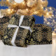 Magnifique damask doré sur fond noir papier d'emballage. Pure élégance ! Idéal pour un anniversaire, mariage, anniversaire de mariage, enterrement de vie de jeune fille.