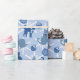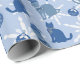 Papier cadeau avec chats portant des écharpes d'hiver dans les tons bleus.
