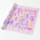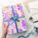 Papier Cadeau Décor Festif Fuchsia Roses Nuages