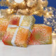 Ce papier d'emballage a un design Boho de starbursts en gamboge (or), rouge, baies et vert.