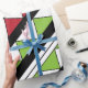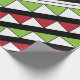 Papier d'enrobage Motif de triangles rouges verts à bandes diagonales. Triangles rouges verts avec motif en diagonale noire.