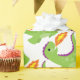 Un petit dragon vert mignon avec des coeurs sur son dos tire des flammes hors de sa bouche.