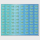 Ce papier d'emballage passe du bleu vert à un bleu plus profond avec une image répétée d'un cadre avec un dragon à l'allure d'hippocampe enveloppé d'algues vertes avec des bulles d'eau.