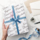 Des mots et des phrases en français couvrent ce papier d'emballage avec des expressions comme "J'envoie mon amour", "beau", "plein de vie", "merveilleux" et plus encore.