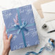 Élégant emballage cadeau comporte les mots "vous souhaitant un Yule Cool" répété dans une police de caractères moderne. Le design stylisé de la typographie est blanc sur un arrière - plan gris bleu. Pour voir le dessin sur d'autres articles, cliquez sur le lien de collection "Rocklawn Arts" ci-dessous.
