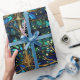 Élégant céleste émeraude vert forêt faux motif en verre teinté avec accents or avec arrière - plan bleu et vert