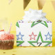 Les étoiles colorées sont carrelées sur du papier. Personnalisez avec une initiale noire au centre de la grande étoile verte. Les plus petites étoiles en rouge, bleu, jaune et violet flottent autour de la grande étoile. Toutes les étoiles sont créées avec un contour en fil de fer à l'allure 3d.