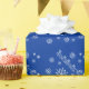 Père Noël et son traîneau volent à travers des flocons de neige de différentes tailles. Graphique en blanc - Personnaliser/Édition/Arrière - plan pour changer les couleurs arrière - plans (bleu, rouge, vert, etc.)