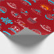 Une série de étiquettes de voyage différents sur un arrière - plan rouge. Cette conception semble vraiment efficace sur ce papier d'enveloppement
