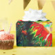 Peinture en acrylique Whimsical, colorée et vibrante sur toile en rouge vif, vert, jaune, bleu par Bulgan Lumini (c).