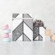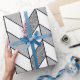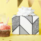 Ce papier d'emballage présente une élégante conception de chevrons avec un motif géométrique en d'os de héron en parties scintillant blanche et faux argent avec des lignes noires.
