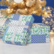 Papier Cadeau Faux Patchwork Bleu Vert Blanc Snowdrop Motif