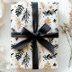 Papier Cadeau Feuillage de Noël moderne noir et or