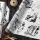 Illustrations de l'édition de 1894 de Pride and Prejudice par Jane Austen avec des citations mémorables en noir et blanc monochrome style toile, pour les amoureux du livre, Mr Darcy et Regency era romance. La motif est transparente.