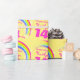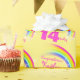 Papier d'emballage d'anniversaire dans un arc-en-ciel coloré avec étoiles et ciel jaune. Personnalisez ce papier d'anniversaire pour filles avec votre propre nom et âge 10 à 19. Lit actuellement Joyeux Anniversaire Kaitlyn 14 aujourd'hui. Parfait pour envelopper un cadeau spécial de 14e anniversaire. Uniquement conçu par Sarah Trett.