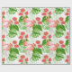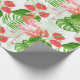 Aquarelle design motif avec des fleurs et des oiseaux flamands, la monstère et les feuilles de palmiers.