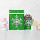 Un élégant design de papier d'emballage de Noël avec des flocons de neige blancs et des étoiles dressé contre un arrière - plan vert et festif.
