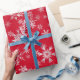 Des flocons rouges et argentés sur ce papier d'emballage de Noël.