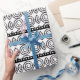 Papier d'emballage élégant avec un motif de bandes noires avec pois et tourbillons noirs sur un arrière - plan blanc. Ce papier d'emballage unique peut être utilisé pour de nombreuses occasions spéciales.