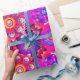 Papier d'emballage abstrait à fleurs de Bohême. Dans les couleurs bleu, rose, orange, vert, bleu, jaune et violet.