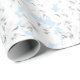 Papier Cadeau Fleurs blanches sur bleu clair.