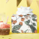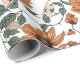 Fleurs brunes pâles et feuilles verts dans un motif transparent sur un arrière - plan blanc.