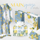 Papier Cadeau Fleurs et citrons tranchés à l'aquarelle bleue