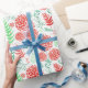 Papier Cadeau Fleurs rouges arrondies vert feuille motif