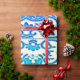 Papier Cadeau Floral chinois en bleu-vert