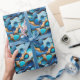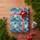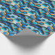Papier Cadeau Fluid Blue Waves Pebbles Or Accent Abstrait