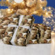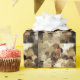 Un design artistique d'arbres dans la forêt avec de riches bruns, blancs et crèmes avec une touche de vert, orange et jaune.