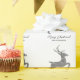 Destei numériquement créé la forme de cerf sautant dans la texture de parties scintillant gris argent faux. Il y a aussi deux zones de texte personnalisables. REMARQUE : La conception est une image numériquement créée qui sera imprimée sur le produit.