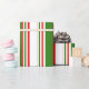 Papier Cadeau Fun Rouge, Blanc, Vert Motif rayé