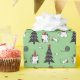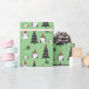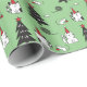 Illustration amusante de Noël de chats dans les chapeaux de Santa, avec des petites souris, des poissons et des fils autour des arbres de Noël. Motif imprimé sur un arrière - plan vert.