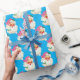 Papier Cadeau Funny Retro Bleu Père Noël Face Noël