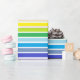 Des bandes de toutes les couleurs d'un arc-en-ciel comprenant rose, rouge, or, orange, écru, jaune, vert citron vert, vert, bleu pastel, turquoise, gris bleu, indigo, lavande et violet soulignés en blanc.
