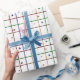 Papier Cadeau Geometric Grid Pattern with Scattered Hearts