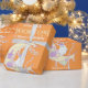 Éffrayante lune jaune melty sur arrière - plan orange et un mignon fantôme éffrayant avec un ami hibou. Parfait pour une gentillesse éffrayante Boo ! Personnalisez le nom de votre bébé garçon pour un papier d'emballage cadeau Spooktacular Halloween 1er anniversaire.