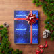 Un essaim de flocons de neige fractaux bleus. Le texte islandais "Gleðileg jól" (Joyeux Noël) apparaît en bleu et blanc éclatant.