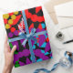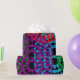 Ce papier d'emballage a un design Black History de grands cercles formés de formes de gouttes de pluie et de cercles en rouge, jaune, violet, vert et turquoise.