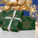 Papier Cadeau Green Gold Snowflakes Arrière - plan rustique