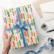 This pattern of broken rectangles feels like a tile mosaic in retro cool colors of pistachio green, emerald, deep coral, light peach and pale ice blue. This pattern is a great gerneric choice for any sort of gifting occasion from birthdays to babies to Christmas.