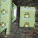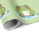 Un papier d'emballage vert avec l'illustration d'une mignonne grenouille sur son étang ! Il pourrait être utilisé pour envelopper un cadeau pour enfant ou pour vos clients si vous avez une boutique!