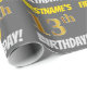 Ce papier d’emballage comporte un message comme "FIRSTNAME’S 13th BIRTHDAY!", avec le "13th" ayant une apparence de couleur fausse/imitation or, et avec le nom et "BIRTHDAY" dans une police amusante et audacieuse. Le nom peut être customisé, et l'arrière - plan est gris (gris) de couleur. Un papier comme celui-ci pourrait peut-être être utilisé pour envelopper les cadeaux d'anniversaire donnés à quelqu'un pour célébrer leur treizième anniversaire. [~Z0000211]