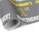 Ce design papier d’emballage comporte un message comme "FIRSTNAME’S 1st BANTHDAY!", avec le "1st" ayant une apparence de couleur fausse/imitation or, et avec le nom et "BANTHDAY" dans une police amusante et audacieuse. Le nom peut être personnalisé et l'arrière - plan est gris (gris). Un papier comme celui-ci pourrait peut-être être utilisé pour envelopper les cadeaux d'anniversaire donnés à quelqu'un pour célébrer son premier anniversaire. [~Z0000211]