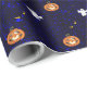 Ce beau papier d'emballage Halloween est décoré de citrouilles drôles, fantômes, chauves-souris et yeux effrayants sur un arrière - plan bleu foncé avec parties scintillant claire. Parfait pour célébrer la saison d'Halloween avec de bons cadeaux !