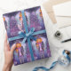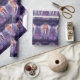 Un craquelin à bec orange gris-o-lanterne tenant une feuille d'érable d'automne apparaît à la lumière d'une pleine lune d'Halloween, entouré de pins violets scintillants et de citrouilles de lavande glacée. Illustration originale de l'artiste Noël Snow.