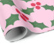 Holly sur papier d'emballage rose idéal pour les cadeaux de vacances.