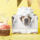 Le visage d'un chien est vu émerger à travers une larme dans un livre blanc, capturant un moment de curiosité et de méfait