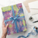 Ce design est basé sur une aquarelle intitulée Iris Cracking Up, il représente un Iris barbu violet qui a peint dans un style abstrait.